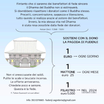 IBAN IT75L0306965734100000001436 Intestato a Istituto Italiano Zen Sōtō Shōbōzan Fudenji